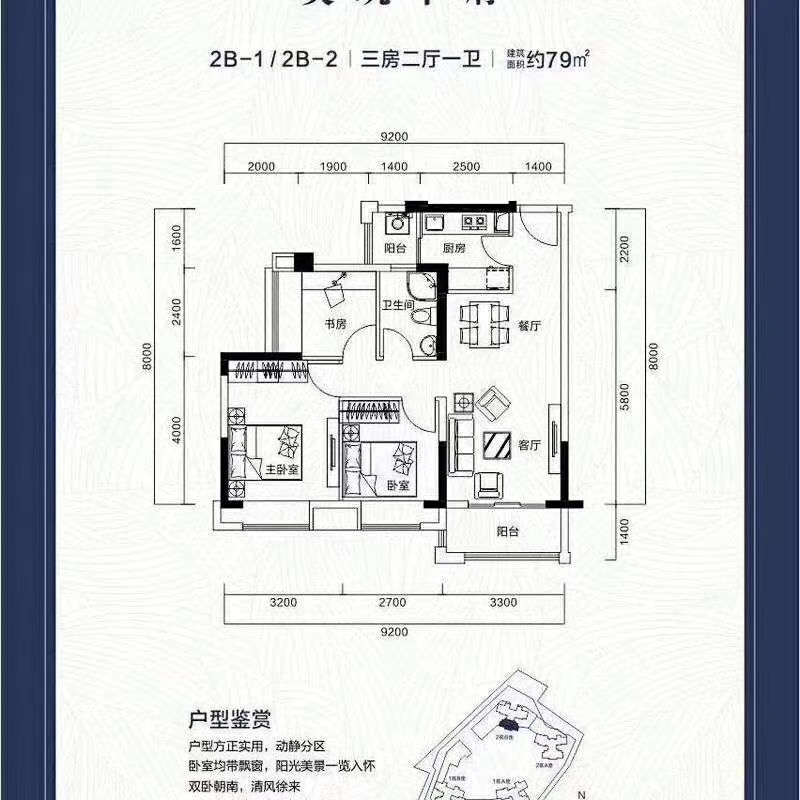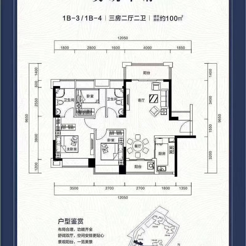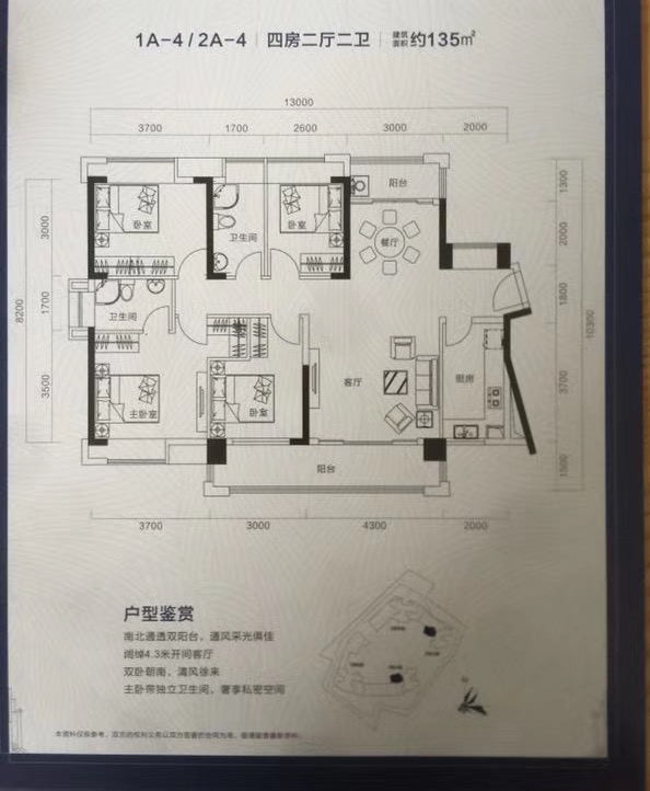 雙陽(yáng)臺(tái),南北通透,使用率達(dá)80%以上